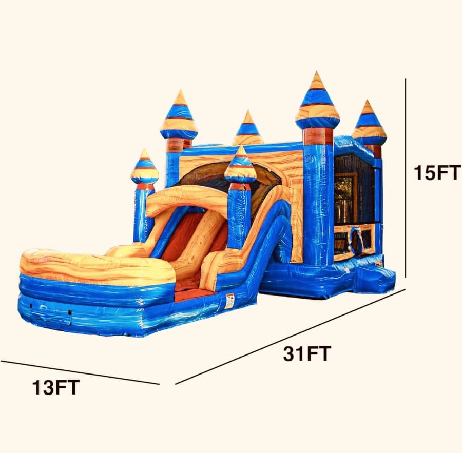 Whether you’re hosting a backyard birthday party๐ก, planning a school celebration, organizing a church event, or setting up a park day, the ARTIC BLUE DUAL LANE COMBO is a crowd-pleaser. With occupancy for 5-6 children in the bounce area and one at a time on the slide, it’s designed for safe and active play.