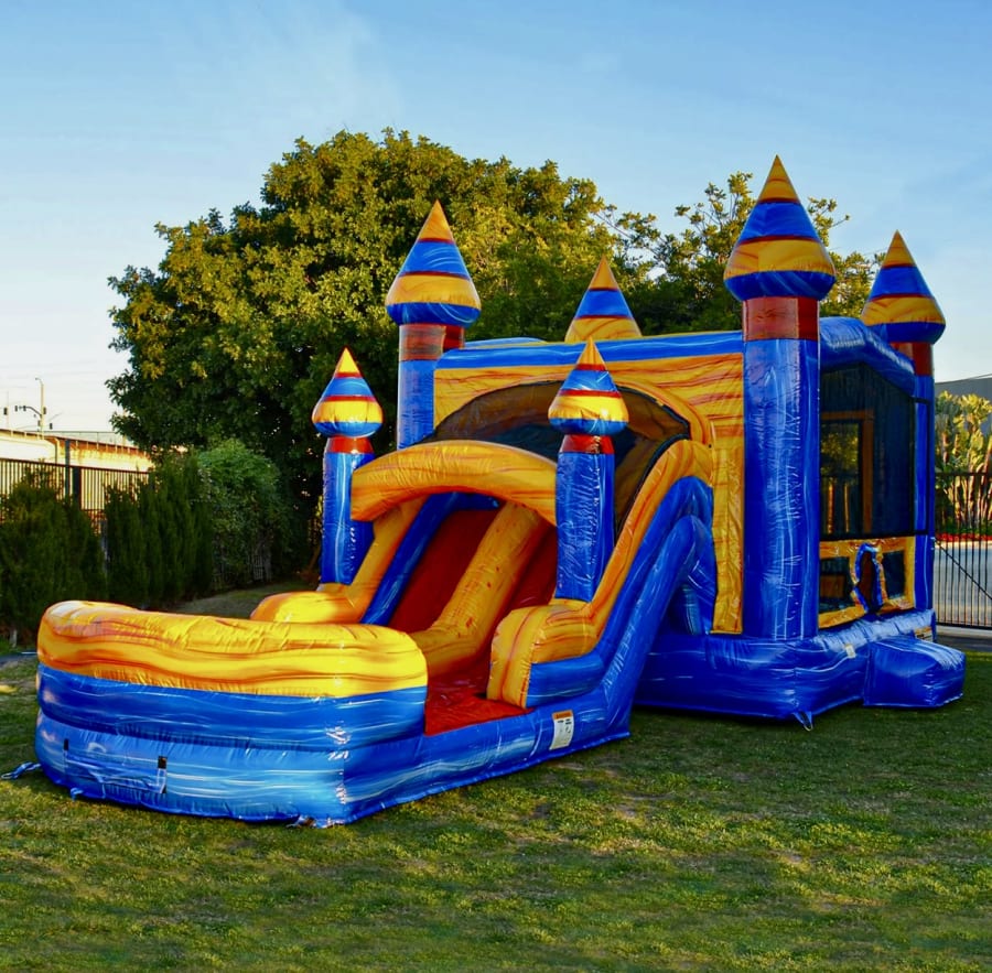 Looking to add a splash of excitement to your next celebration? The ARTIC BLUE DUAL LANE COMBO is the ultimate choice for birthday parties, school events, park events, and church events across South Florida! This vibrant inflatable combines the thrill of a bounce house and a double lane slide, making it the centerpiece of any get-together. Experience the perfect blend of old-school fun and new-school style with its striking red, blue, and yellow color scheme. ๐